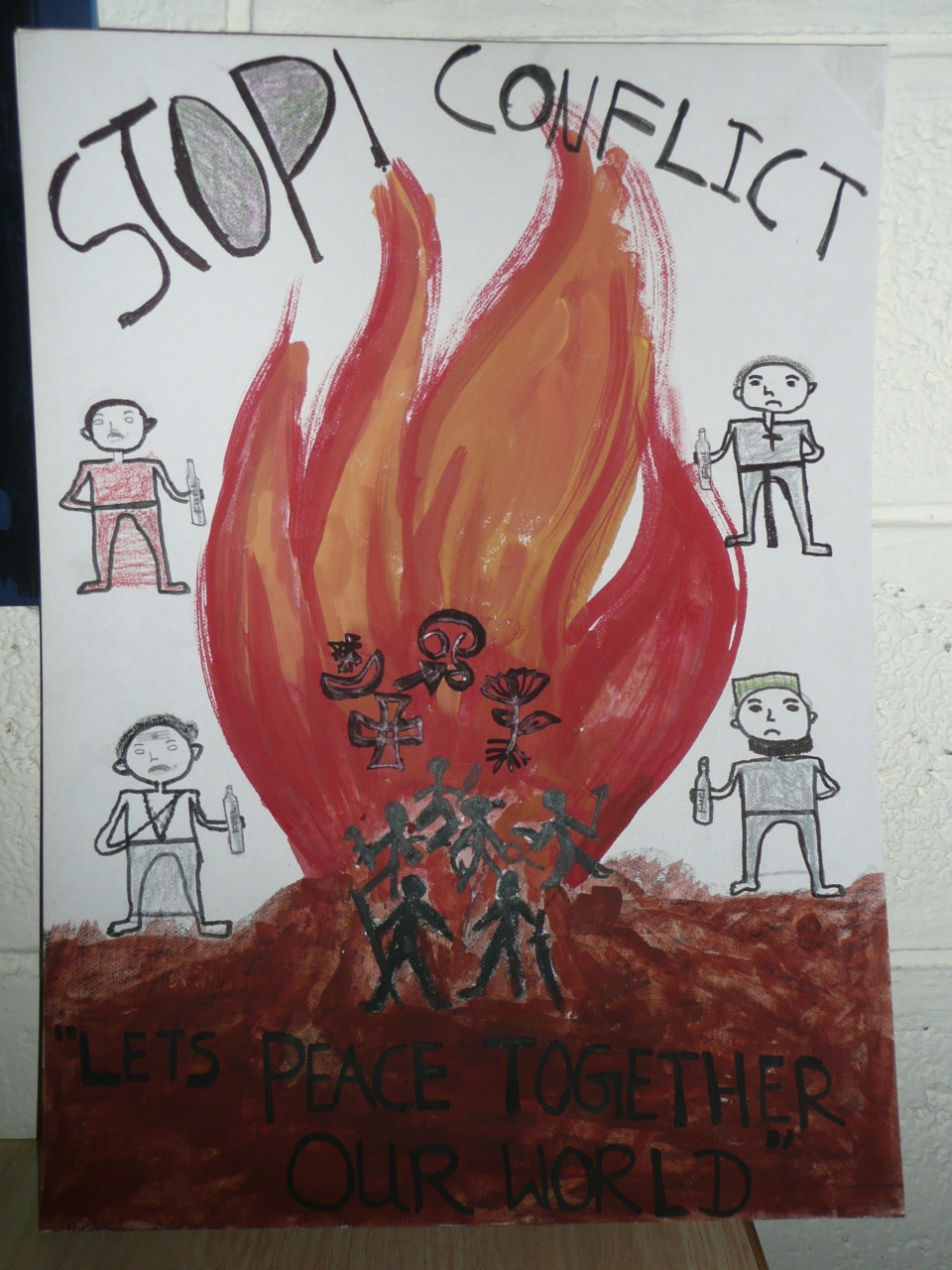 Vorige week hebben we gewerkt aan posters over de thema's die we besproken hebben. Het resultaat ziet u hieronder. Het zijn 11 verschillende posters, inclusief die van Biyoora en John.
