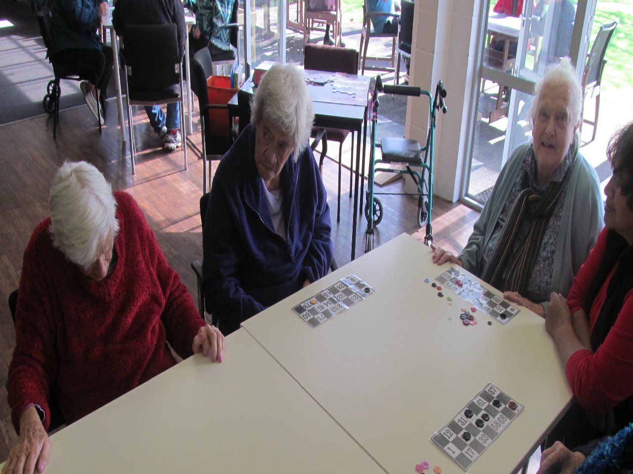 Samen met Thangboi ben ik een aantal dagen naar een dagopvang voor ouderen geweest. Deze ouderen hebben allemaal om verschillende redenen een indicatie voor deze opvang. Een aantal mensen heeft Alzheimer in verschillende stadia, een aantal anderen hebben een hersenbloeding gehad en weer een aantal anderen komt vooral voor socialisitie. De opvang is er om de druk van de familie, de mantelzorgers, af te nemen, zodat die ook nog kunnen werken of andere dingen doen. Dagelijks komen er 15-25 mensen. Onze rol lag aan de sociale kant: een praatje maken, ze helpen met het maken van een puzzel, een spelletje doen, helpen bij teken- en schilderactiviteiten en het serveren van thee, koffie en lunch.