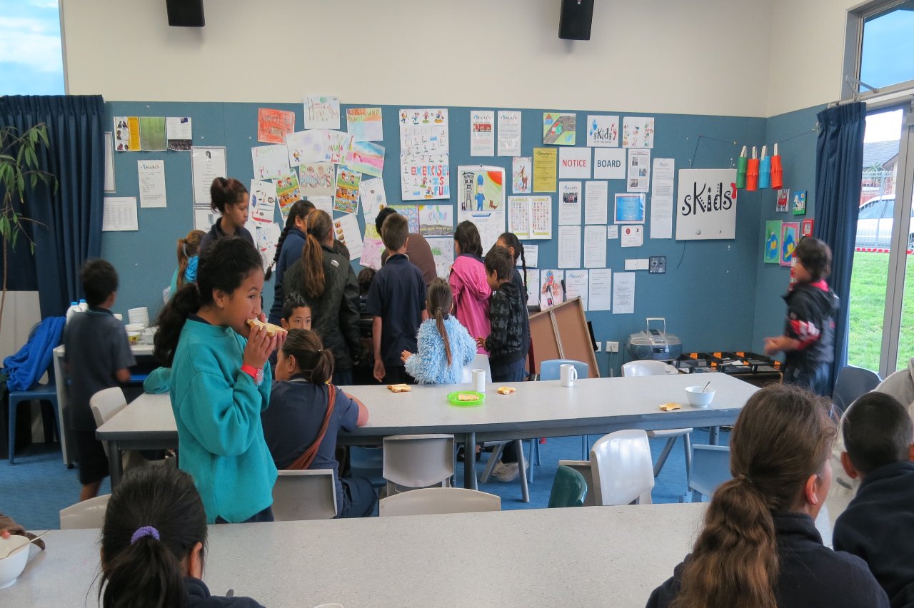 Een aantal ochtenden hebben we ook geholpen bij de Breakfast Club. Deze club is drie jaar geleden door Steve Farrely opgezet om basisschoolkinderen van ontbijt te voorzien, die thuis geen ontbijt krijgen. De school staat in een van de armste buurten van Auckland en is een 'decile 1' school. In Nieuw Zeeland hebben alle scholen een decile notering, die een weergave is van de socio-economische staat van de wijk. Decile 1 scholen staan in de armste buurten, decile 10 in de rijkste. Hoe hoger het decile nummer, hoe minder geld de school krijgt van de regering. Op het eerste gezicht lijkt het een eerlijk systeem, alleen: hoe hoger het decile nummer, hoe meer geld de ouders hebben en hoe meer zij dus kunnen bijdragen aan de school. Daarom hebben kinderen op de laagste decile scholen minder kansen dan op hoge en deze kinderen worden vaak als dommer bestempeld. Ontsnappen is er niet bij, omdat de kinderen naar een school in hun eigen wijk moeten.